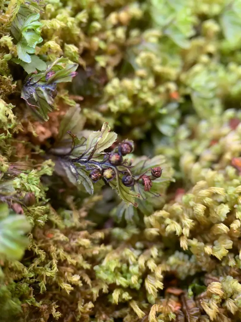 Image 8: Not only liverworts (mainly Plagiochila sp.), but in fact the tiny Wilson’s filmy fern Hymenophyllum wilsonii!