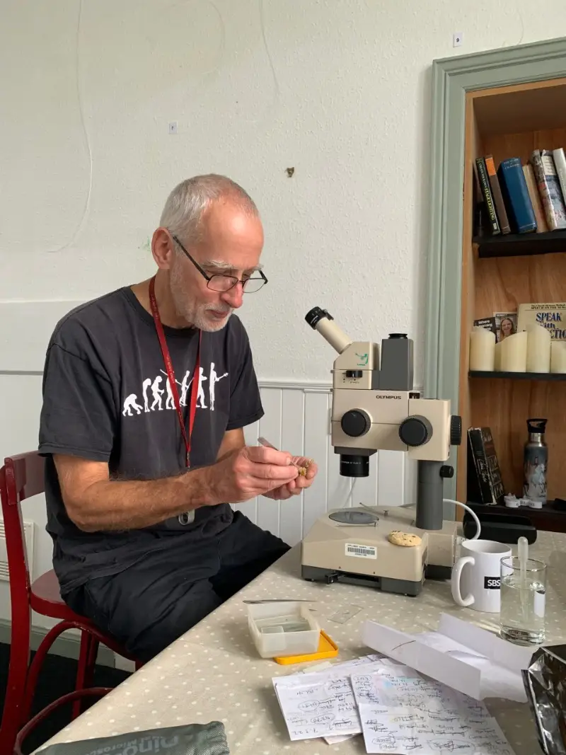 I think I made the wrong decision in terms of who the event should be aimed at, but nevertheless, those that did attend had a truly wonderful time. A simple day, run by bryologist Nick Hodgetts, a very highly experienced professional who’s also, luckily for us, an excellent teacher. The day was split in two with time on the Plock looking at, and collecting, species in the wild and then time in a makeshift lab set up in Skye Bridge Studios for some microscope work. In the field each of us wore a hand lens, a tiny magnifying glass which enables you to magnify plants in the field, and for those rare species that we wouldn’t collect, it still allowed us to see them in close up.